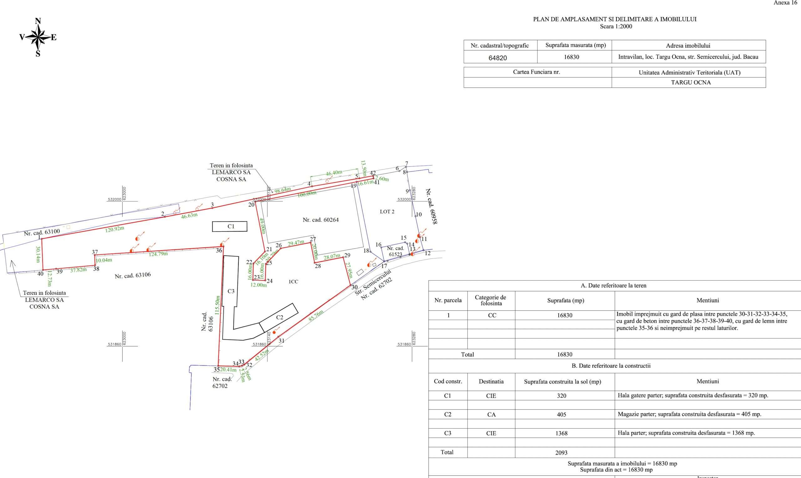 - Lotul 2 - Fosta fabrică de mobilă - valoare: 4.425.637,61 lei, plus TVA cf. Cod fiscal. Proprietatea imobiliară situată pe strada Semicercului, Târgu Ocna, constând în două terenuri: primul cu o suprafață de 7.047 mp, pe care se află o construcție cu o suprafață de 4.508 mp, iar al doilea cu o suprafață de 16.830 mp, pe care sunt amplasate trei construcții, având o suprafață totală de aproximativ 2.093 mp, împreună cu bunurile mobile aferente, necesare utilizării activelor industriale;